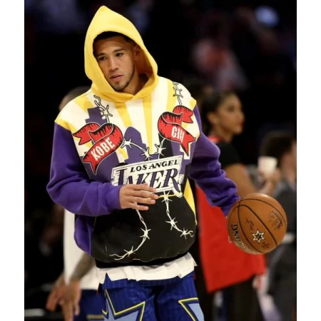 America Suits introducing The Los Angeles Lakers Devin Booker Kobe Hoodie. It is a tribute to legendary form and basketball brilliance. If you like Devin Booker and have been waiting for this Devin Booker Kobe Hoodie for too long, then wait no longer for it to be here. This hoodie is manufactured with great consideration and attention to detail. Consequently, this sweatshirt honors the legacy of Kobe Bryant and celebrates the Lakers' culture. The Los Angeles Lakers Devin Booker Kobe Hoodie is a pullover in design, this hoodie is the ideal choice for informal gatherings or supporting your favourite Lakers team from the stands since it is comfortable and convenient. Moreover, the hoodie neck gives an urban edge, while the long sleeves offer warmth and coverage.