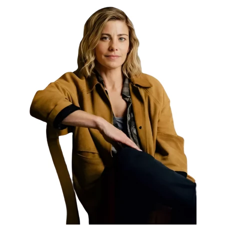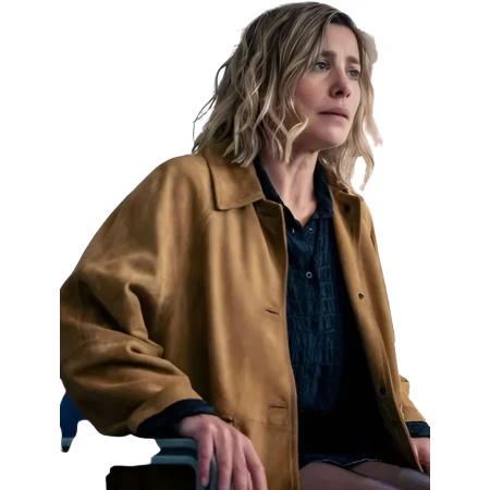 This brown suede leather jacket is inspired by Dear Life 2026, worn by Lillian Vandenberg, which represents a well-crafted casualness.