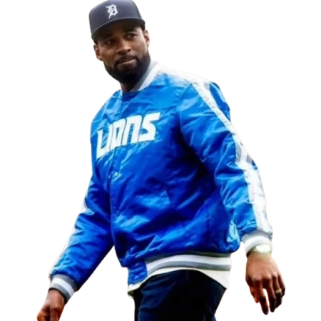 With the Detroit Lions Calvin Johnson Jacket, you can truly step into the legacy of an NFL legend—a daring statement piece for true fans. The azure-blue tone of this jacket brilliantly combines sporty style, comfort, and Lions pride, all inspired by the legendary receiver, Calvin Johnson.