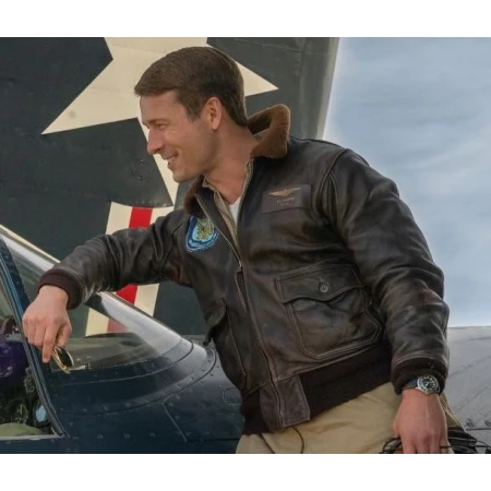 At the end of this year, the action, war, and drama film Devotion is scheduled for release. The movie's trailer has been released, and we are now impatiently awaiting the release of the whole movie. This movie's teaser features some beautiful shots, and the director appears commendable. The costumes in DEVOTION TOM HUDNER LEATHER JACKET are another item that has caught our attention. This movie, Devotion 2022, is also associated with this DEVOTION TOM HUDNER LEATHER JACKET. Real leather was used in the construction of this Glen Powell Devotion Tom Hudner Leather Jacket and combined with the interior soft viscose lining. It boasts long sleeves with rib-knitted cuffs, a frontal zipper design, and a shearling collar. It has two outside waist pockets, two interior pockets, and a rib-knitted hemline. It is fantastic clothing because of the attractive brown color. Devotion Tom Hudner Leather Jacket can be your favorite outfit collection for sure.