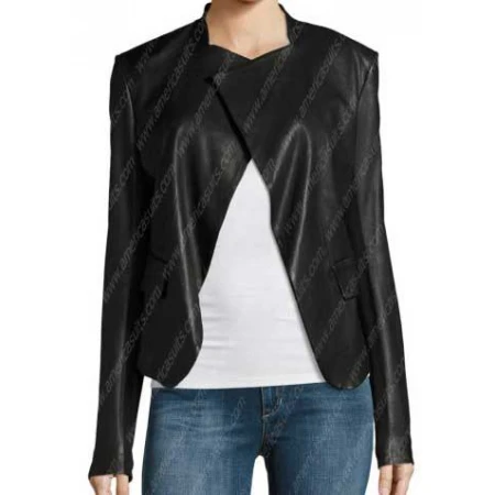 Item Description For Dinah Drake Black Drape Leather Jacket: