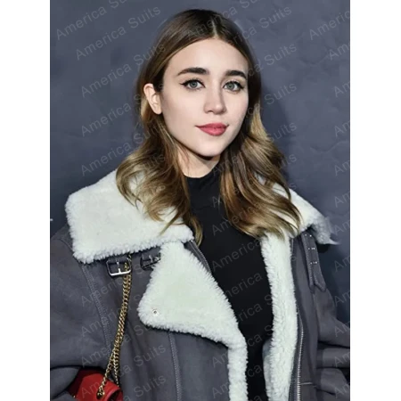 the Divinity 2023 Felicity Leather Jacket, a stunning piece inspired by the captivating style of Caylee Cowan. Crafted with meticulous attention to detail, this Caylee Cowan Divinity Gray Leather Jacket exudes elegance and sophistication. Made from high-quality suede leather, it offers a luxurious feel and superior durability, ensuring it will be your faithful companion for years to come. The jacket's inner lining features faux shearling, providing exceptional warmth and comfort during colder seasons. Embracing both style and functionality, it is designed with a convenient zipper closure at the front, allowing for easy wear and a secure fit. The shearling collar adds a touch of timeless charm, making it a versatile addition to any wardrobe.