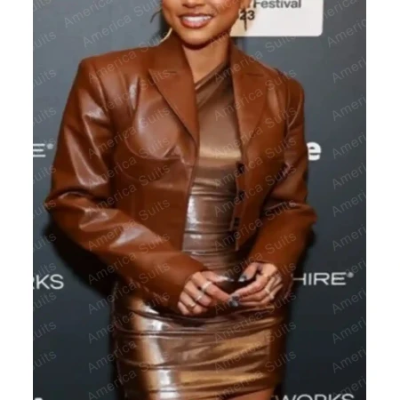 Featuring a classic lapel collar, this jacket adds a touch of refinement to any outfit. The button closure adds a secure and snug fit, while also adding to the overall aesthetic appeal. The rich brown color enhances the jacket's versatility, allowing it to seamlessly complement a variety of ensembles. This leather jacket is more than just a fashion statement. It is a symbol of confidence and individuality. Whether you're attending a formal event or going for a casual outing, the Divinity 2023 Karrueche Tran Leather Jacket is sure to turn heads and make a lasting impression.