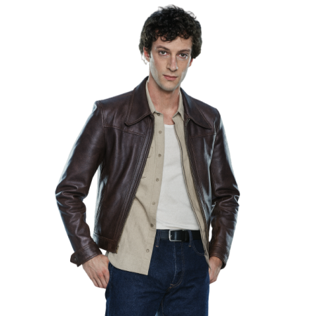 The Dominic Sessa Now You See Me Leather Jacket is crafted from premium quality leather to give you comfort with durability. The leather comes with a very subtle luster, feels firm, and needs softening of its own. It has exactly that little bit of lived-in character which lends it authenticity. Layered with dark denim and Chelsea boots, it is a no-fuss quick outfit for smart casual occasions. Besides that, there's a touch of luxury for the moisture-wicking liner that keeps the wearer comfortable through the long day while the charming sheen of the jacket adds its bit of luxury. The standard shirt-style collar and front zipper give a vintage look with a contemporary twist, finishing the jacket. It features two front pockets and full sleeves; this jacket serves casual wear best.