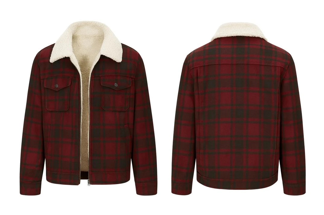 It is made of soft wool, strong and at the same time very comfortable enough to keep you for hours. An imitation-shearling lining is as cosy and warm, but not too heavy, making it something to really consider for fall and winter. It showcases a deep red and black plaid on a simple off white sherpa collar, reminiscent of that classic look inspired by Jody Thompson’s character Ronnie Long in “Down River 2025.” Embellished mainly among the waist, this full sleeves cover with zipper and button cuff is a stylish secure cover. It has five pockets, including one compartment for interiors, so you can keep your personal belongings in plenty.
