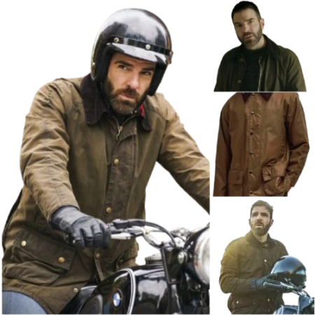 Zachary Quinto Brilliant Minds Oliver Wolf Brown Waxed Jacket