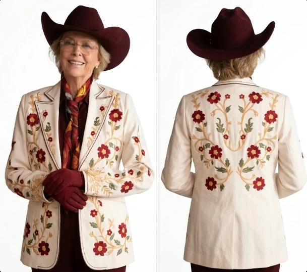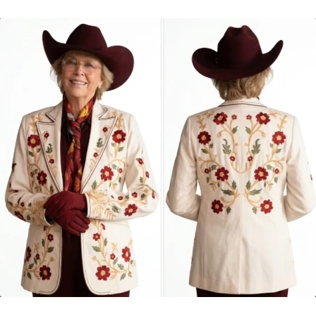 Annette Bening Dutton Ranch 2026 Embroidery Coat