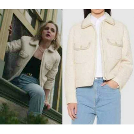 Comes in a milky white color which looks totally amazing when paired with bright colors or blue jeans. Top-quality fabric and viscose material both are used for fabrication, but we assure you these are durable to wear for a long time period. A collar of Eden Hawkins S02 Jacket, designed in a turndown style, our talented design team makes it size small, especially for all the beautiful women. Two flap chest pockets will be utilized for keeping the belongings safe and secure. Additionally, long fitted sleeves and open hem cuffs, also present. Hurry up and place your order fast!