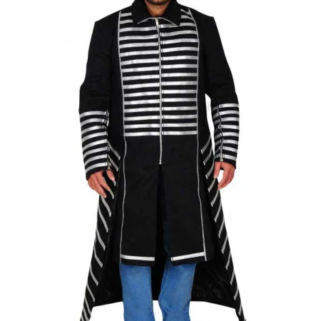 Step into the spotlight with the Elegant Mike The Miz Mizanin Coat, an epitome of sophisticated style and modern flair. This stunning coat features bold, contrasting stripes that cascade dramatically from the shoulders to the hem, creating a visual spectacle that captivates and charms. Crafted with meticulous attention to detail, the coat boasts a sharp collar, a seamless button front, and a tailored fit that enhances your silhouette. Whether attending a gala or a premiere, this coat promises to make a grand statement.