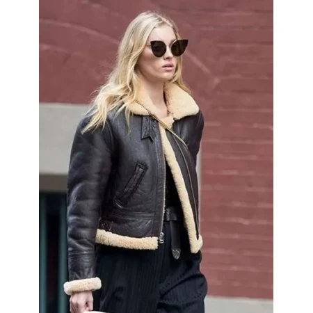Elsa Hosk Brown B3 Shearling Leather Jacket