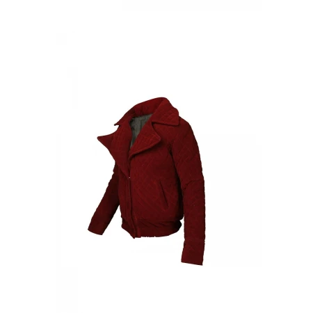 This maroon jacket is made from original velvet, which looks good and is attractive. It has an inner viscose lining that makes it more snug and pleasant to wear.