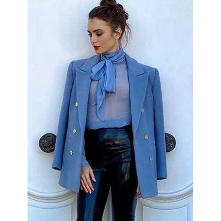 If you're a fan of the hit Netflix series "Emily in Paris", you'll love this stunning Emily In Paris S02 Lily Collins Blue Peacoat inspired by Lily Collins' character's iconic wardrobe. Made from premium wool, this coat is not only stylish but also incredibly warm and cozy, making it the perfect addition to your winter wardrobe. The deep shade of blue used in this coat is both bold and sophisticated, making it a statement piece that is sure to turn heads. It features a double-breasted front with large buttons, giving it a timeless and classic look that never goes out of style. The collar and cuffs are also accented with subtle detailing, adding a touch of elegance to the overall design. One of the standout features of this coat is its high-quality wool material. Wool is known for its warmth, durability, and breathability, making it the perfect fabric for cold weather garments. This coat is crafted from a premium wool blend, ensuring that it will keep you warm and comfortable even on the coldest of days. Another great feature of this coat is its versatility. Whether you're dressing it up for a night out or wearing it casually to run errands, this coat is sure to elevate any outfit. Its tailored fit and flattering silhouette make it a great choice for any body type, and its deep blue color makes it easy to pair with a wide range of other colors and styles. In terms of care, this coat is easy to maintain and clean. Simply dry clean it to keep it looking fresh and new for years to come. Its high-quality construction ensures that it will hold up well over time, even with regular wear. Overall, if you're looking for a stylish and warm coat that is both versatile and timeless, this blue peacoat inspired by "Emily in Paris" is a great choice. Its premium wool material tailored fit, and classic design makes it a wardrobe staple that you'll enjoy wearing for years to come. So why wait? Order yours today and start turning heads with your chic and sophisticated style.