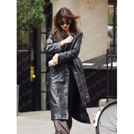Emily Ratajkowski New York 2023 Black Leather Trench Coat