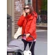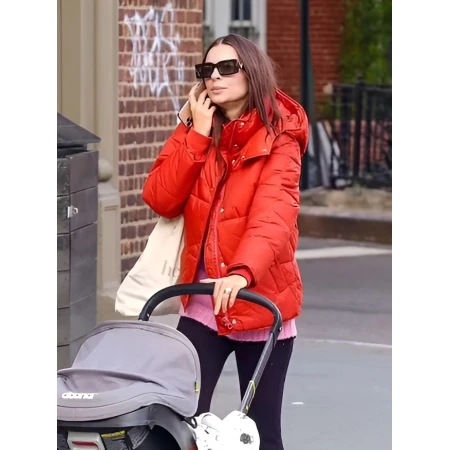 The Emily Ratajkowski Orange Puff Jacket is an easy-to-acquire one-piece warmth that makes good sense when dressed in street style, whether passing over early morning coffee runs or running errands before layering for a neutral stroll. The bright sunny orange infuses a lively color texture that effortlessly brightens an otherwise dark or plain winter style.