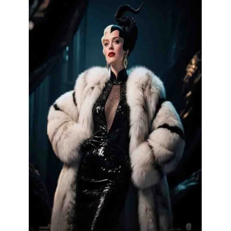 Movie Cruella 2 Emma Stone Beige Faux Fur Long Coat
