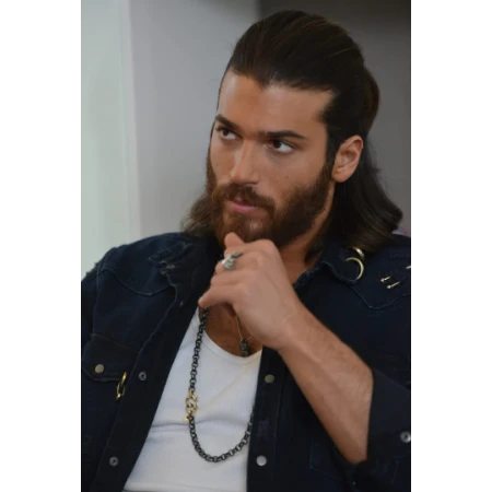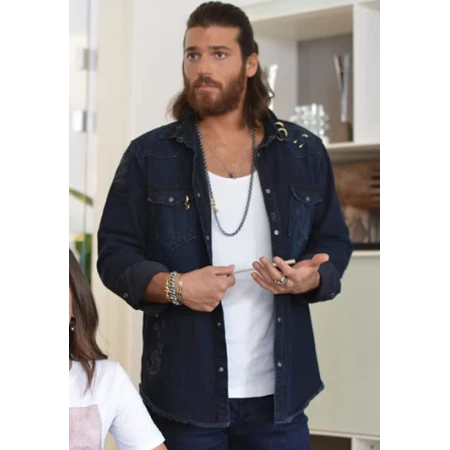 This dark blue denim jacket is worn by Can Yaman in the Turkish TV series Erkenci Kus. It is made of high-quality denim and features a classic fit with a single-breasted closure. The jacket has two front pockets and two interior pockets, as well as a button-down collar. It is a versatile piece that can be dressed up or down and is perfect for any occasion.