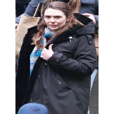 Explore the Elizabeth Olsen Black Hooded Coat at America Suits. Accessorised to suit your individual style and lifestyle needs.