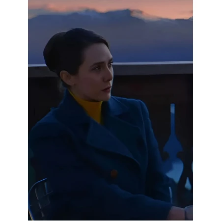 Explore Elizabeth Olsen Blue Wool Coat by America Suits and see how it can fit into your style as an everyday luxurious addition to your wardrobe.