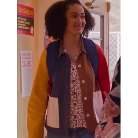 Designed with practicality in mind, this jacket is equipped with two front pockets and one inside pocket, providing convenient storage for your essentials. Whether you need to carry your phone, keys, or wallet, you can keep them within easy reach while on the go. The multicolor design adds vibrancy and playful touch to your outfit, making it a standout piece that will turn heads. The Fabiola Torres Never Have I Ever S04 Jacket is a versatile garment that can be effortlessly styled for various occasions. Pair it with jeans for a casual look, or dress it up with a skirt or dress pants for a more polished ensemble. Embrace your individuality and channel the confident energy of Fabiola Torres with this exceptional jacket.
