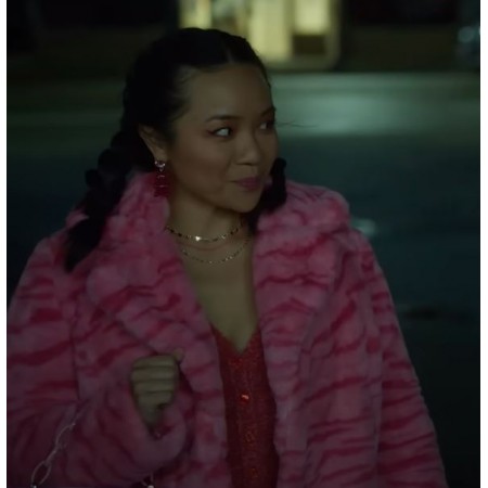 Moving forward, Fur fabric is used to make Fakes 2022 Jennifer Tong Pink Fur Coat. The interior design is filled with soft viscose lining. The front is full of open button closure with on top-notch lapel-style collar attached. It offers full-length sleeves with open hem cuffs. Fakes 2022 Jennifer Tong Pink Fur Coat has two outside and one inside spacious pockets that make this jacket more useful to carry things. Jeniffer Tong looks so nice in FAKES 2022 JENNIFER TONG PINK FUR COAT. Zoe and Becca, two teenage best friends, set out to create their empire of phony IDs, but as business takes off, their life of crime becomes far too real. The lead part was portrayed by Jennifer Tong. She is a Canadian actor who has been nominated for a Leo. She was a West Coast native who began performing at a young age. As she grew older, she experimented with ballet, singing, and musical theatre before settling on acting as her primary focus. She was seen wearing a FAKES 2022 JENNIFER TONG PINK FUR COAT which is offered in our store. So save yourself some time and get this coat before it sells out.