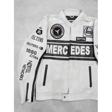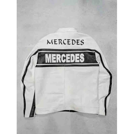 F1 Mercedes Cafe Racer Black and White Leather Jacket