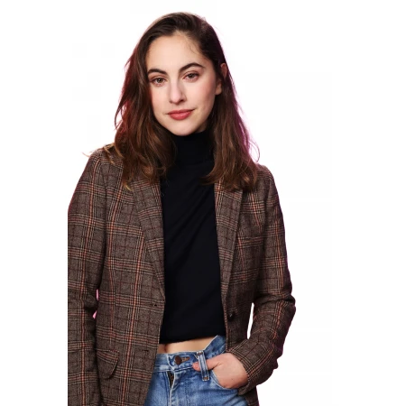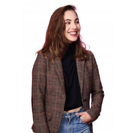 Presenting the Gabby Between The Temples Checked Coat –How cool does Madeline Weinstein look in Between The Temples? Guilty as charged for stealing this style! This checked coat is made of the best suiting fabric so it lasts longer and is chic! The checked pattern is applied in its design, which gives the dress the much-needed touch of elegance to make it unique and a darling of any woman.