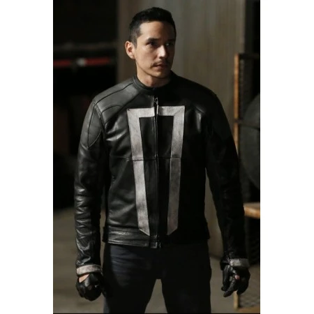Look no further than the Gabriel Luna Ghost Rider Agents of Shield Jacket! Crafted from real leather, this jacket is designed to make you look and feel like a superhero. It features a zipper closure, an erect collar, G-R silver strip stitched, silver edge zipper cuffs, two waist pockets, and two inside pockets. With full sleeves, this jacket will keep you warm and stylish all season long.