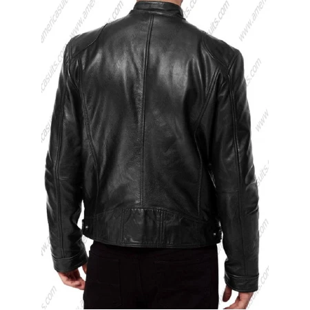 Genuine Black Lambskin Leather Biker Jacket For Men