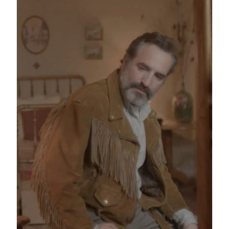 During the shoot of the film Deerskin, Jean Dujardin as Georges wearing Georges Deerskin Brown Fringed Jacket that you are seeing here. This is a French comedy horror film and received a positive response from the viewers. Deerskin is written and directed by Quentin Dupieux.
