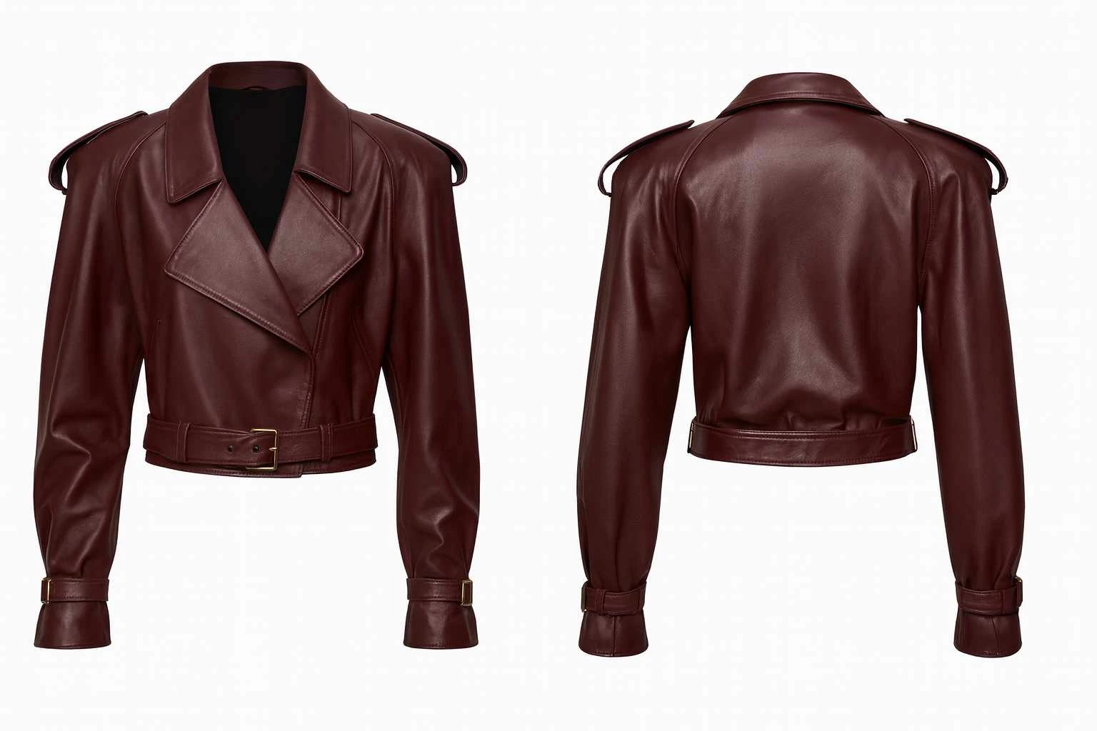 Georgia Fowler Maroon Cropped Belted Leather Jacket