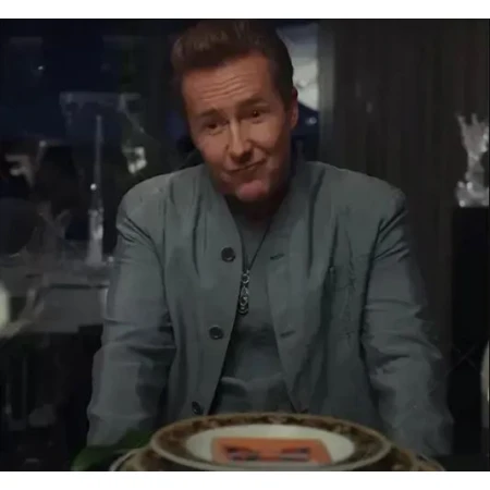 In the Movie Glass Onion: A Knives Out Mystery Edward Norton's Jacket is an amazing piece of clothing. It is well-made and looks great. The jacket is also very comfortable to wear, and I love the way it fits me. This polyester jacket has a front buttoned closure and open hem cuffs. It's the perfect way to show you're a fan of the movie while staying warm.