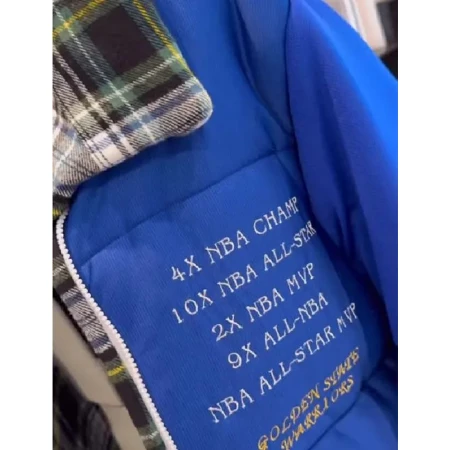 The Kristin Juszczyk Golden State Warriors Jacket has two vertical pockets on the right chest with a zipper closure and ragged folds on the collar The further detailing includes the inner lining embroidered with the achievements of a famous Warriors player. This stylish yet practical jersey jacket would be ideal to wear during match day or any day as a loyal fan of the team. But put on this piece of Warriors equipment and stay warm and fashionable at the same time. The custom-fit design and your favorite team’s colors make you not only comfortable but unique, too!