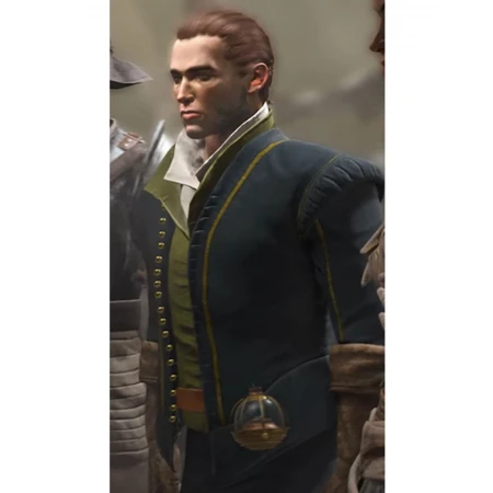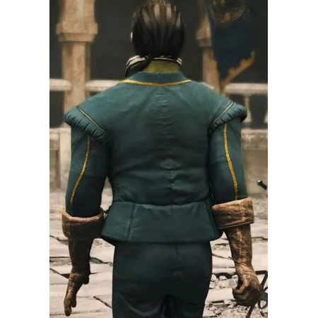 Greedfall Jacket is manufactured from 100% pure cotton jacket. There is a viscose lining on the inner side of the jacket to keep you comfortable. The beautiful blue color and golden piping scheme are the unique features of this attire. Vasco Jacket also has a stitched neckline. It also has a minuscule button fastening for front closure. Puff on the shoulder end gives you a Prince charming look. This men's cotton jacket has open hem cuffs. You can easily wear this jacket along with your daily wear outfit. Get it now if you want to give yourself a prince and dashing look at the same time.