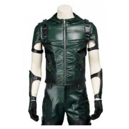 The Green Arrow Stephen Amell Hoodie Costume with Pants is in hooded style with a front zipper for conclusion gives you a voguish look and makes it a present-day piece of attire. Made from artificial cowhide/honest-to-goodness calfskin alongside an inward gooey inside bolster gives you solace and smooth impact. The Bolt Season 4 Hoodie is in mixed green and dark shades and gets consideration from everybody. There is a punctured example on the waist region and the muscle outline component on the mid-section gives a contender a look and settles its champion decision. Outlining with sparkly snap catch and sewing points of interest on calfskin patches is the spirit of the coat making Arrow Season 4 Vest incredible clothing of the most recent design pattern without a sad remnant of any uncertainty.