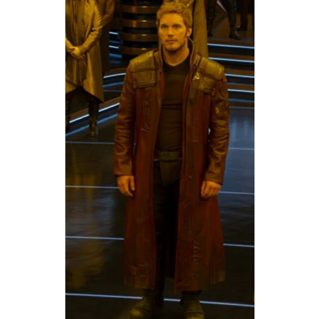 Get hyped for the most anticipated movie of the year, Guardians of the Galaxy Volume 2! Chris Pratt returns as StarLord, sporting a long trench coat that is nothing short of iconic. This movie is jam-packed with action, adventure, and comedy, and the cast includes big names such as Vin Diesel and Kurt Russell. But let's talk about the real star of the show: the StarLord Trench Coat. Made from genuine or faux leather, this coat is an absolute must-have! With its maroon, red, and brown colour combination and eye-catching Gizmo styles, you'll turn heads wherever you go. And the best part? It can be adjusted to fit your size perfectly. America Suits has gone above and beyond to bring you a coat that is as close as possible to the one worn by Peter Quill. So don't wait any longer - add this immaculate coat to your collection today!