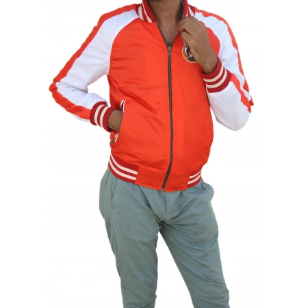 Look no further than the Gunpowder Milkshake Sam Orange Jacket. This eye-catching jacket is made from satin material and features a rib-knitted collar, long sleeves, and rib-knitted cuffs. It also has two slant waist pockets outside, and two pockets inside. The front of the jacket opens with a zippered closure. The Gunpowder Milkshake Karen Gillan Orange Bomber Jacket is sure to turn heads with its orange color and white sleeves. The tiger cub logo embroidered on the chest and back adds a unique touch.