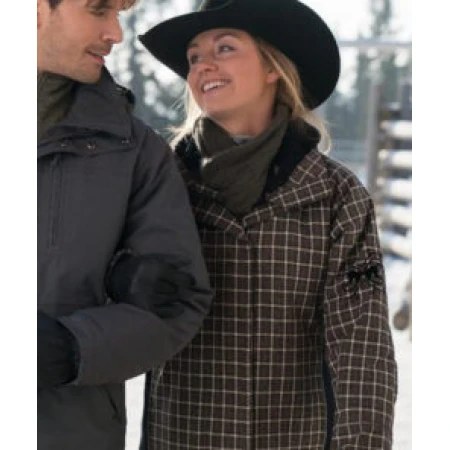 Features Of Heartland Amy Fleming Checkered Brown Jacket: