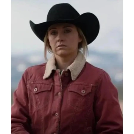 Heartland S14 Jacket is an appealing maroon color jacket, the color that will surely be considered an ideal by all fashion enthusiast women. The inner side consists of a soft shearling lining, and the external side is manufactured from corduroy fabric, both keep you warm, in the extreme cold season. A turn-down style collar, designed by using the same shearling material in white color. The button closing ending of long sleeves can be folded up too, for those who don't want to make it close. When it comes to the pockets, there are two button flap pockets on the chest side. Amy Fleming Jacket has an easy-to-use button closing specification.