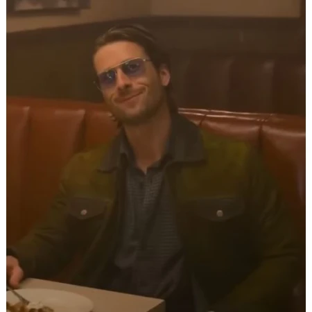 The Hit Man 2024 Gary Johnson Green Jacket design is inspired by Glen Powell. A suede leather is used in the manufacturing of this trending stylish outfit. The suede leather provides a timeless appeal and attraction to the person wearing it. Comprising of full sleeves, the Gary Johnson green jacket has a collar that resembles shirt style. It makes it more unique and attractive. Along with the full-length sleeves, the cuffs of the sleeves are buttoned.