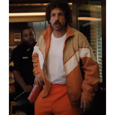 Hubie Halloween Adam Sandler Bomber Jacket that you are seeing here, crafted from top quality fabric in an eye fascinating orange color. Meanwhile, the inner side covered with a different material that is viscose helps to absorb all the sweat of your body. A branded zipper closing and opening feature present on the front side reaches up to the level of a traditional shirt style collar. Elastic cuffs of full-length sleeves wrap perfectly around your wrist. A wide stripe of white and light brown colors designed on the front side. The inner side of the Adam Sandler Jacket does not contain any pocket but the outer side has two pockets on the waist side. We assure you, it is the exact same one that you have seen in the film. Drop your order as soon as possible!