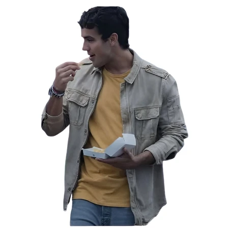The jacket, inspired by the character Edu Serra in the 2026 film Idolos, is crafted with high-quality cotton materials. Although thin, the quality is long-lasting, and the breathable quality is on the outside, while the inside is covered with a smooth and friendly layer of viscose, allowing for a full day’s wear. The collar and buttons on the front create an old-fashioned look, fitting for a casual or semi-formal setting.