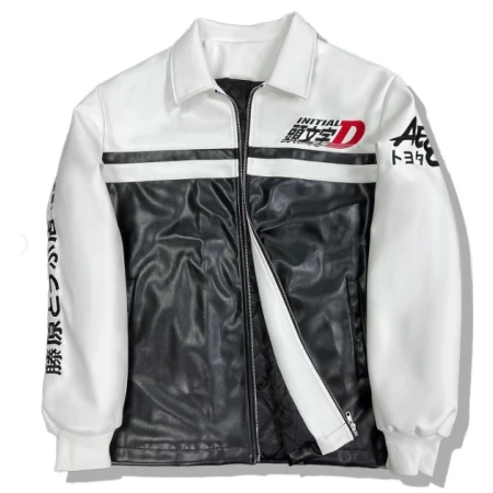 This is made with the fine craftsmanship of faux or genuine leather, which balances heavy-duty durability and warm, comfortable wearing while not compromising the sound design. This is a black and white themed perfect emblem of classic AE86 style itself, while the bold print of "Initial D" and Japanese writing stands true for the racing origin of the anime content. The closed zipper provides a snug fit with a shirt-type collar, creating that ageless edge for a casual outing or themed events.