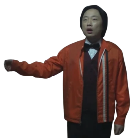 Chinatown Jimmy O Yang Orange Jacket reproduces