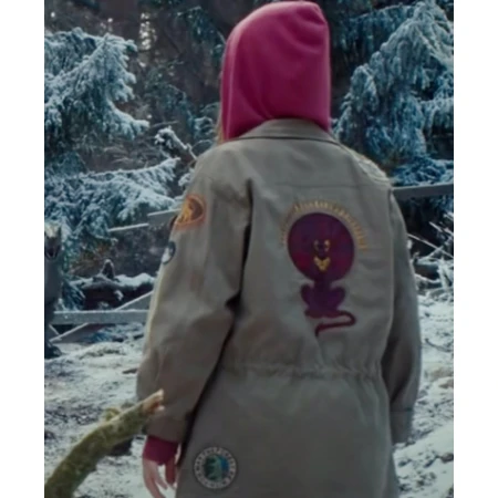 - Design: The jacket features a practical design with multiple pockets, reminiscent of Maisie's on-screen attire. It also includes a hoodie, offering added versatility and style.