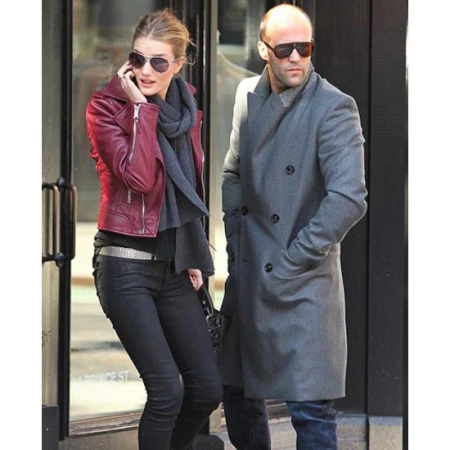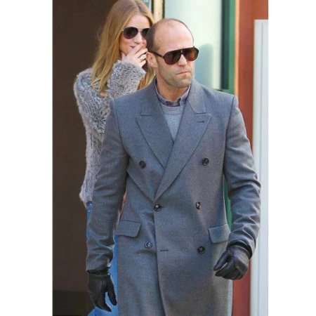 Jason Statham Wool Double-Breasted Grey Coat