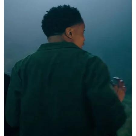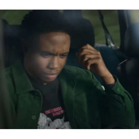 Featuring a shirt-style collar, the Imran Adams CorduDiscover the Jeepers Creepers Reborn Imran Adams Corduroy Green Jacket from Jeepers Creepers Reborn! This high-quality denim jacket effortlessly combines comfort and fashion, ensuring durability and sophistication.