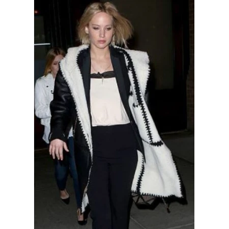 Jennifer Lawrence Black Leather Coat