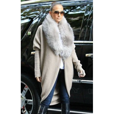 Jennifer Lopez Beige Faux Fur Coat