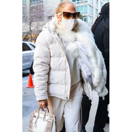 Jennifer Lopez White Hooded Jacket