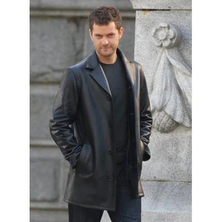 Hot Joshua Jackson Peter Bishop Fringe Black Long Leather Coat